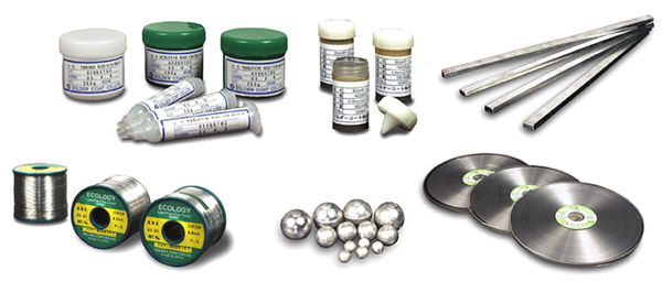 Solder is used for connections on printed circuit boards, electrical wiring and terminals, and in many other applications as well as vehicle onboard computers and other applications in extremely severe environments requiring a diversity of forms and alloy compositions.